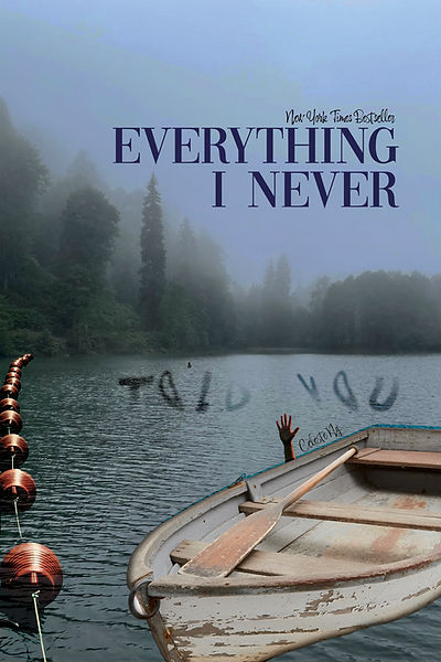 This design uses hierarchy, movement and asymmetrical balance to create a visually compelling and emotionally engaging composition. The hierarchy is clearly established through scale, placement and contrast. The boat and raised hand serving as the primary focal point. Their size, detail and placement in the foreground immediately draw the viewer's attention and create a strong emotional impact. The title, Everything I Never Told You, functions as the secondary element, positioned at the top and large enough to be read, but not overpowering. Additional information, like "New York Times Best Seller" and the buoys act as tertiary elements, while "Told You" blends into the environment to encourage close investigation.
